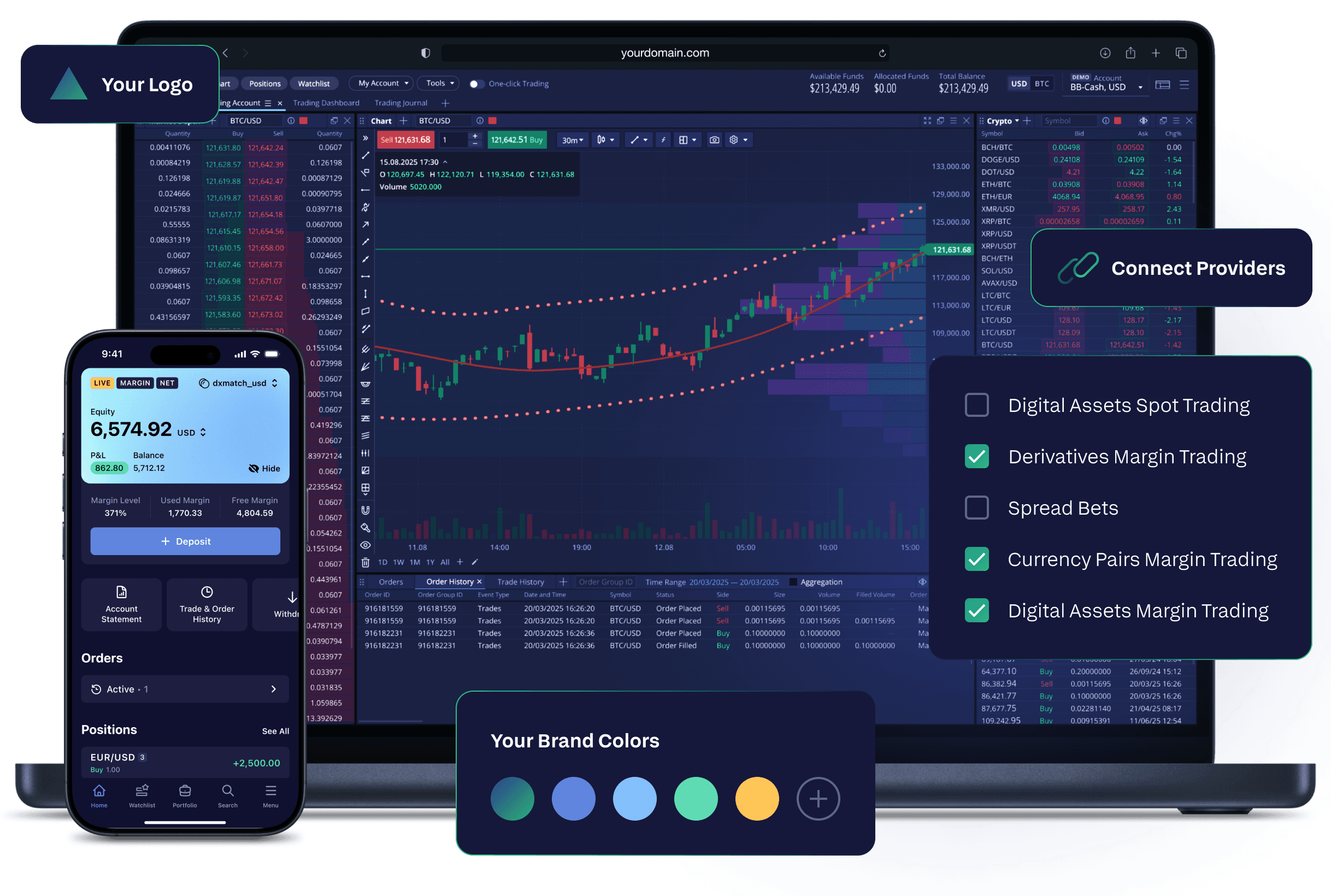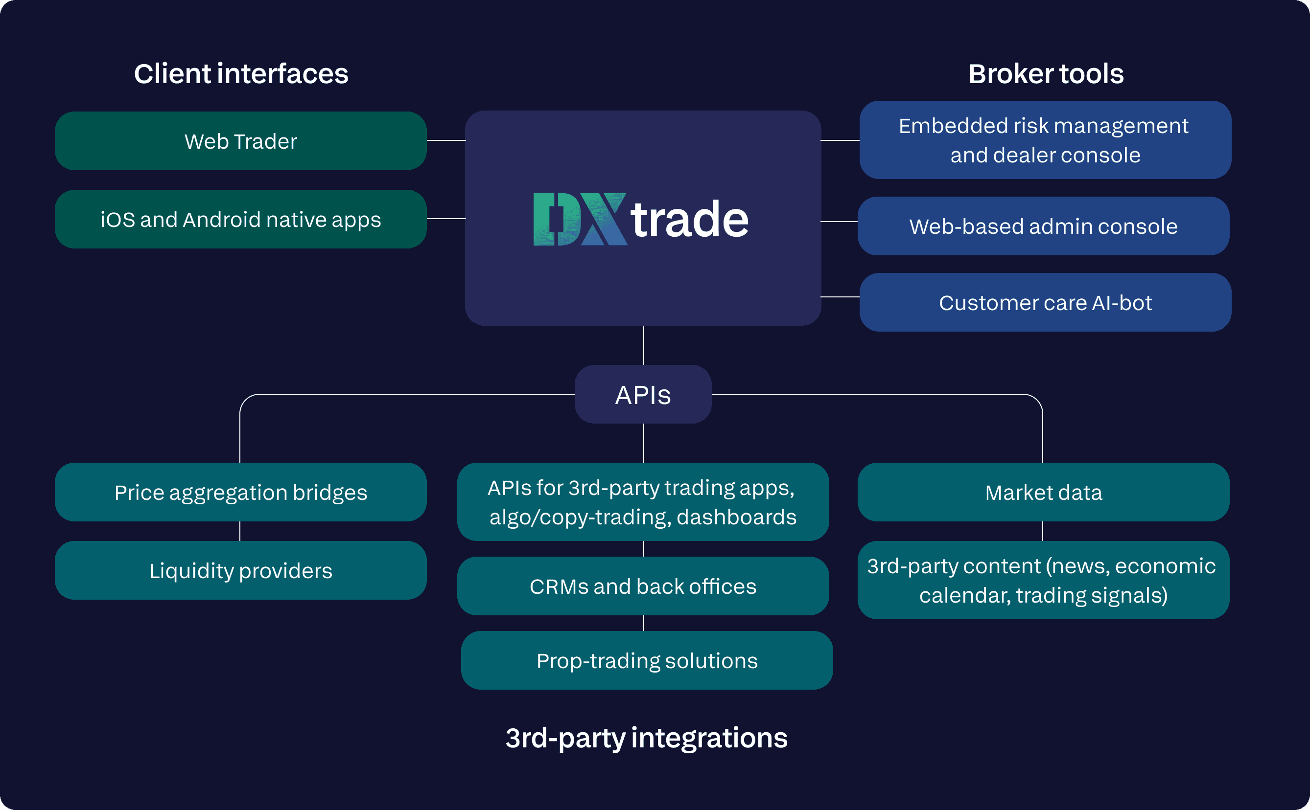 DXtrade is a white-label platform for digital asset trading, with configurable execution, risk controls, and client experience.